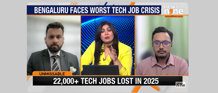 Kanishk Gaur, Founder of India Future Foundation, discusses the significant impact of AI on the IT job market, particularly for entry- and mid-level professionals whose roles are increasingly being automated, on NEWS9 LIVE.